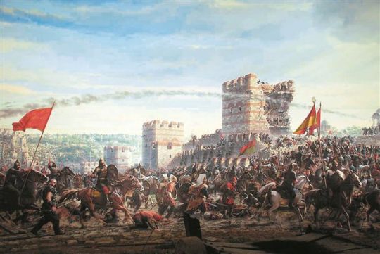 (Ο Μεχεμέτ), αφού ετοίμασε τα πάντα όπως καλύτερα νόμιζε, έστειλε μήνυμα λέγοντας στο βασιλιά: «Μάθε ότι έχουν τελειώσει οι πολεμικές προετοιμασίες. Ήρθε πια η ώρα να κάνουμε πράξη αυτό που θέλουμε εδώ και πολύ καιρό. Την έκβασή του την αφήνουμε στο Θεό. Τι λες; Θέλεις να εγκαταλείψεις την Πόλη και να φύγεις, όπου θέλεις, μαζί με τους άρχοντές σου και τα υπάρχοντά τους, αφήνοντας αζήμιο το λαό και από μένα και από σένα; Ή θέλεις να αντισταθείς και να χάσεις τη ζωή σου και τα υπάρχοντά σου και συ και οι μετά σου, κι ο λαός αφού αιχμαλωτιστεί από τους Τούρκους, να διασκορπιστεί σ’ όλη τη γη;» Κι ο βασιλιάς με τη σύγκλητο αποκρίθηκε: «Αν θέλεις να ζήσεις μαζί μας ειρηνικά, όπως και οι πρόγονοί σου, ας έχεις την ευλογία του Θεού. Γιατί εκείνοι θεωρούσαν τους γονείς μου ως πατέρες τους και τους τιμούσαν ανάλογα, κι αυτή την πόλη τη θεωρούσαν ως πατρίδα τους. Σε καιρό ανάγκης όλοι τους έτρεχαν μέσα να σωθούν και κανένας αντίπαλός της δεν έζησε πολλά χρόνια. Κράτα τα κάστρα και τη γη που μας άρπαξες άδικα, όρισε και ετήσιους φόρους ανάλογα με τη δύναμή μας κα φύγε ειρηνικά. Σκέφτηκες ότι ενώ νομίζεις πως θα κερδίσεις μπορεί να βρεθείς χαμένος; Το να σου παραδώσω την Πόλη ούτε δικό μου δικαίωμα είναι ούτε κανενός άλλου από τους κατοίκους της· γιατί όλοι με μια ψυχή προτιμούμε να πεθάνουμε με τη θέλησή μας και δε λυπόμαστε για τη ζωή μας».